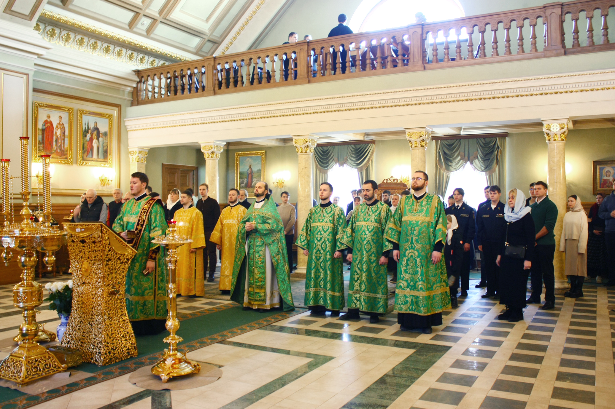 16.11.2025 - В храме  преподобного Макария Египетского Горного университета была совершена литургия иереем Артемием Щукиным – клириком Князь-Владимирского собора. Доцент кафедры русского языка и литературы Игорь Мальцев исполнял обязанности чтеца. Пел хор сотрудников университета под управлением регента Людмилы Турубаровой.  В богослужении участвовали  студенты, преподаватели, сотрудники и гости университета. По окончании литургии отец Артемий обратился с проповедью к прихожанам храма, пожелал успехов в учебе студентам. За трапезой священник провел беседу со студентами и преподавателями университета.
